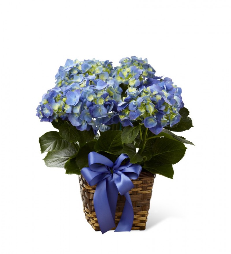 Hydrangea Plant!! What a lovely way to lighten and brighten their day! Flowering with brilliant blue or pink against dark green foliage, Substitution of colour maybe required. Deluxe is shown. premium is a double basket.