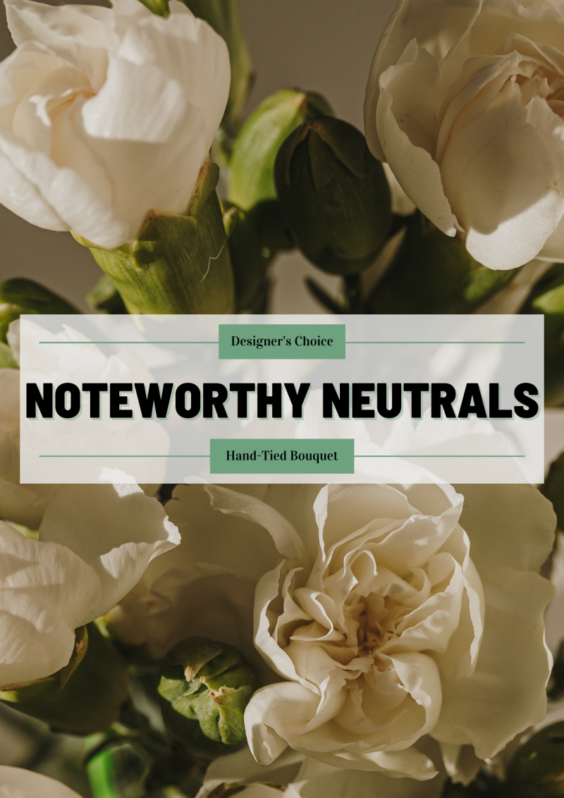 Our Noteworthy Neutral hand-tied bouquet is a timeless way to express your thoughts and love. Using neutral and white florals, these bouquets exude elegance at it's finest.